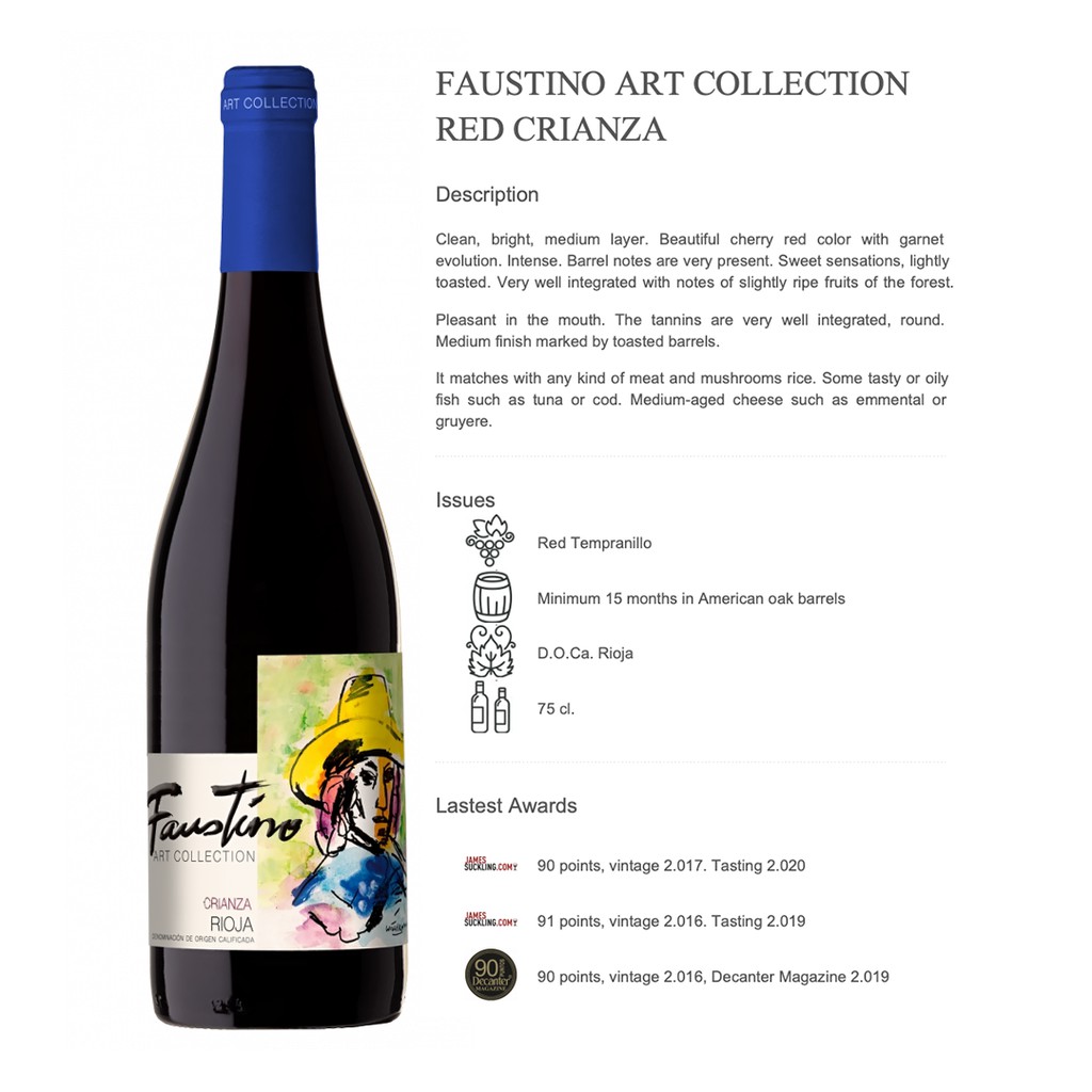 Eine rioja crianza mit dieser ausstattung und zu so einem kleinen preis wird man woanders nur schwer finden! Faustino art collection crianza 2016 (1 x 0.75 l) : Faustino faustino art collection crianza | jetzt online bestellen | sicher und günstig | sehr gute kundenbewertung | schnelle lieferung Eine rioja crianza mit dieser ausstattung und zu so einem kleinen preis wird man woanders nur schwer finden!. Deren etikett geht auf keinen geringeren als rembrandt 'art collection' rioja crianza 2016 bodegas faustino